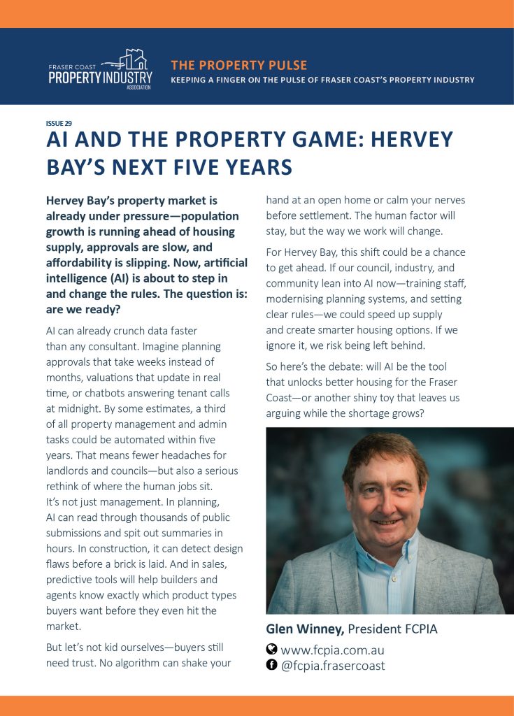 Hervey Bay’s property market is already under pressure—population growth is running ahead of housing supply, approvals are slow, and affordability is slipping. Now, artificial intelligence (AI) is about to step in and change the rules. The question is: are we ready?