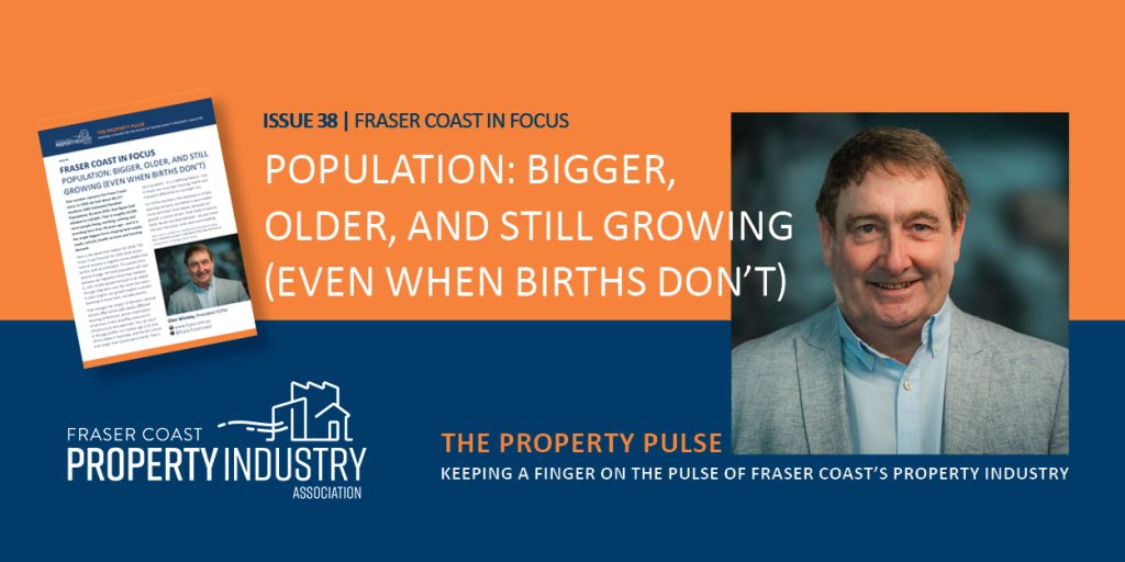One number captures the Fraser Coast story: in 2006 we had about 86,117 residents (ABS Estimated Resident Population). By June 2024, that figure had climbed to 120,685. That is roughly 34,500 more people living, working, retiring and investing here than 20 years ago – and it is the single biggest force shaping land supply, roads, schools, health services and housing demand. Here is the detail that matters for 2026. The Fraser Coast forecast for 2024-2026 shows natural increase is negative (more deaths than births), with an estimated -751 people from natural change. Yet total population still rises because net migration more than replaces it, with +3,896 people forecast to be added through migration over the same two years. In plain English: our growth engine is people choosing to move here, not baby booms. That changes the ‘shape’ of demand. Lifestyle movers often arrive with equity, different housing preferences, and an expectation of services. It also amplifies pressure on infrastructure and approvals. You can see it in the age profile: our median age is 51 (one of the oldest in Australia), and the 65+ cohort is far larger than Queensland overall. That is not a problem – it is a defining feature – but it means we must plan housing, health and transport differently to a younger city. For FCPIA members, the takeaway is simple: planning certainty and delivery pace matter more here than most places, because our growth is choice-driven. If we make it hard to build, we do not slow demand – we just move the pain into price, rents and overcrowding. Stats source: profile.id / .id (Informed Decisions) using ABS Estimated Resident Population (ERP) and forecast.id components of change (2024-2026).