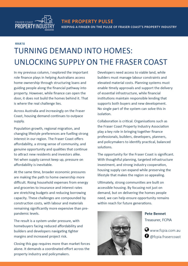 Across Australia and increasingly on the Fraser Coast, housing demand continues to outpace supply.